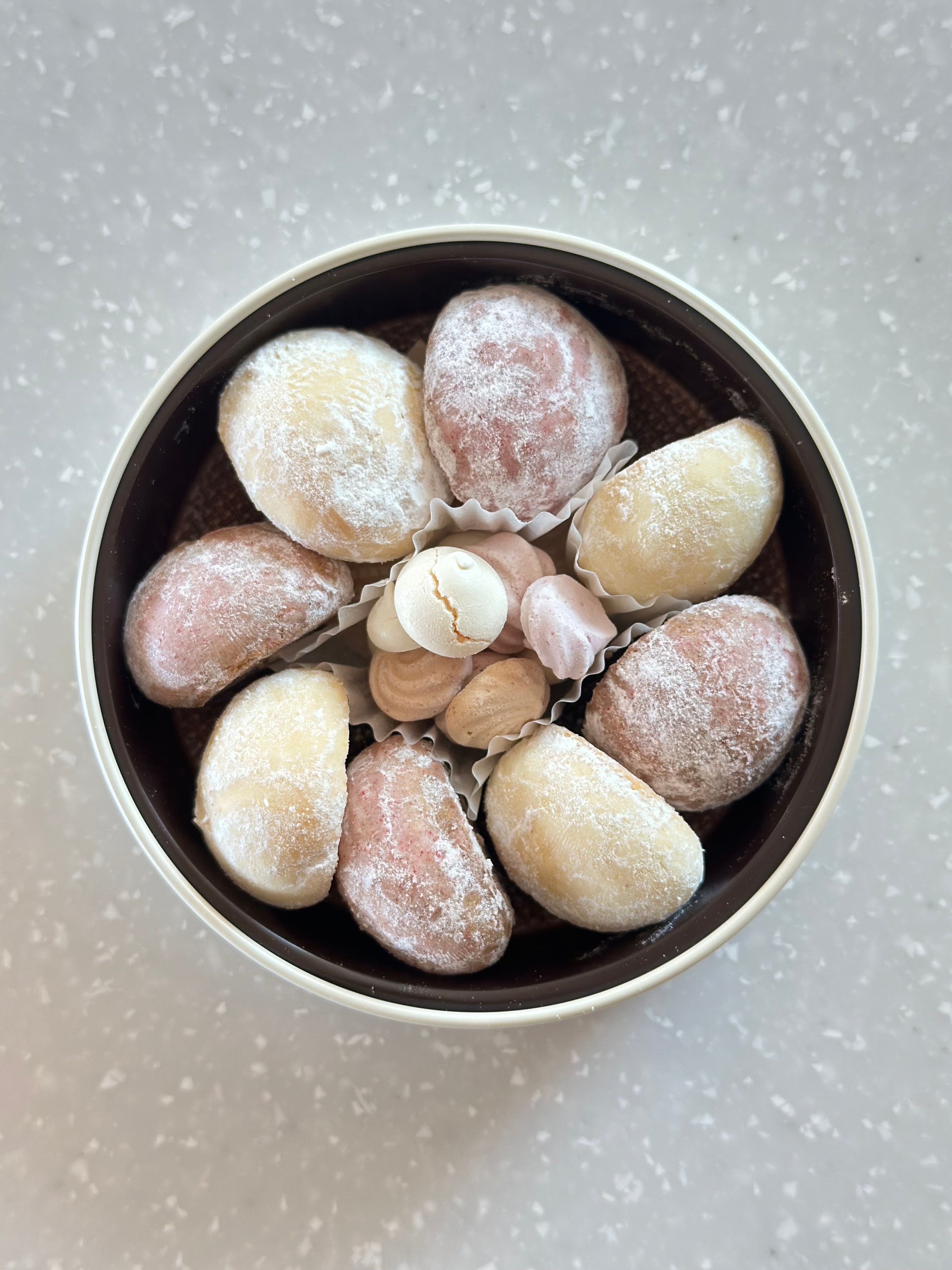 小麦粉、バター、砂糖、アーモンドパウダー、コーンスターチ、バニラ、ラズベリーパウダー、塩